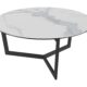 Tamara coffee table from Akante. The Tamara coffee table is simple and elegant. Black lacquered steel base and a choice of ceramic tops in various finishes, 90cm in diameter.